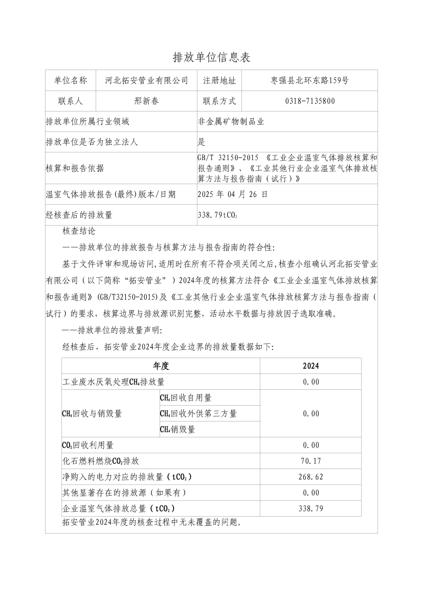 拓安2024年溫室氣體核查報告